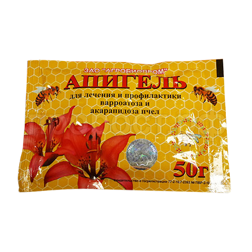 На верхней поверхности герметичного пакета в шахматном порядке проделывают 5-6 отверстий (диаметром 3 мм) до появления капель геля и размещают на дно улья из расчета 1 пакет на улей. Обработку проводят 2-х кратно по мере удаления пчелами геля (во время чистки улья) через 5-7 дней. Одновременно проводят дезинфекцию освобожденных рамок и пчеловодного инвентаря одним из разрешенных к применению дезинфектантов.
